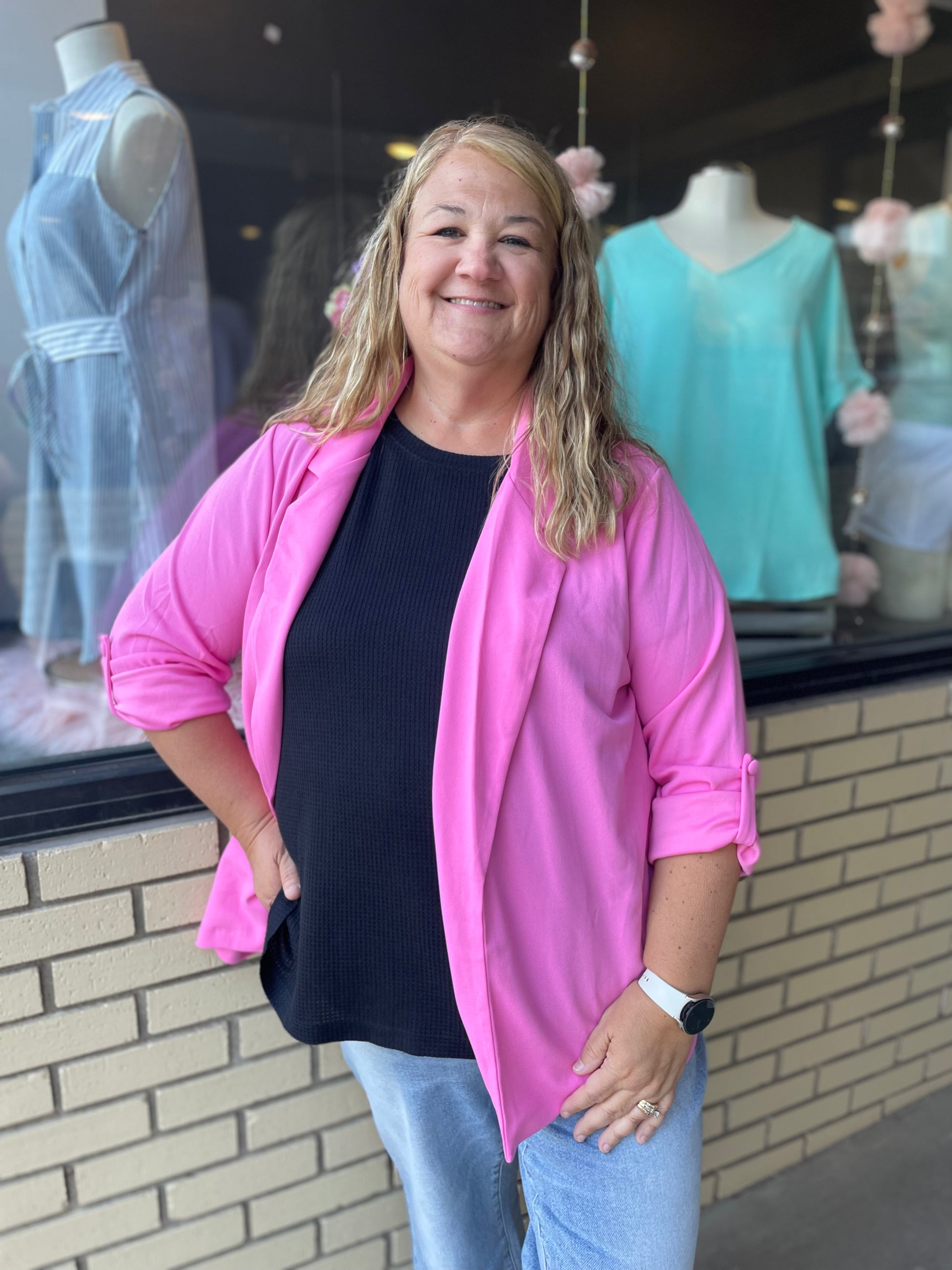 Upgrade your wardrobe with this easy open front blazer, designed in a relaxed boyfriend style for a laid back yet polished look! The rolled up sleeves add a casual touch, while the stretchy fabric ensures comfort and freedom of movement. Perfect for work, causal days, dates nights! Stretchy.