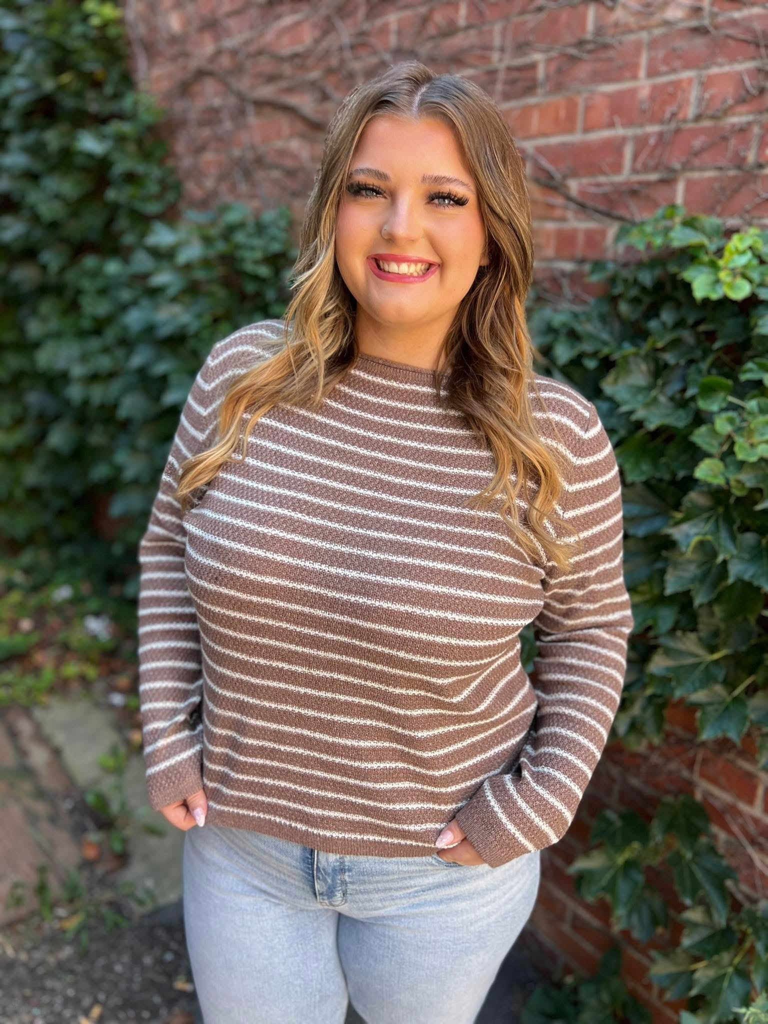 Boat neck, long sleeve, super soft, waffle striped, pullover sweater