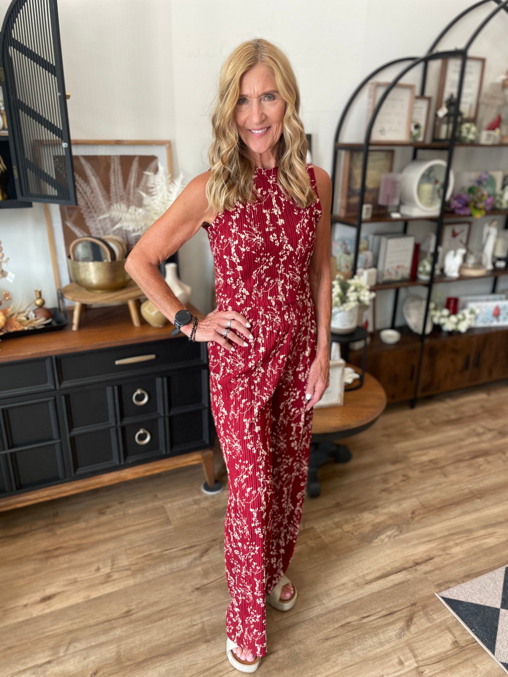 This crinkled textured sleeveless cropped top loungewear set in a gorgeous crimson orchid print is the epitome of versatile chic. The unique crinkled texture adds a stylish dimension to the set, while the sleeveless cropped top offers a relaxed yet flattering fit. Perfect for lounging, this set can easily be dressed up with accessories and heels for a night out or dressed down with sneakers for a laid-back look.
