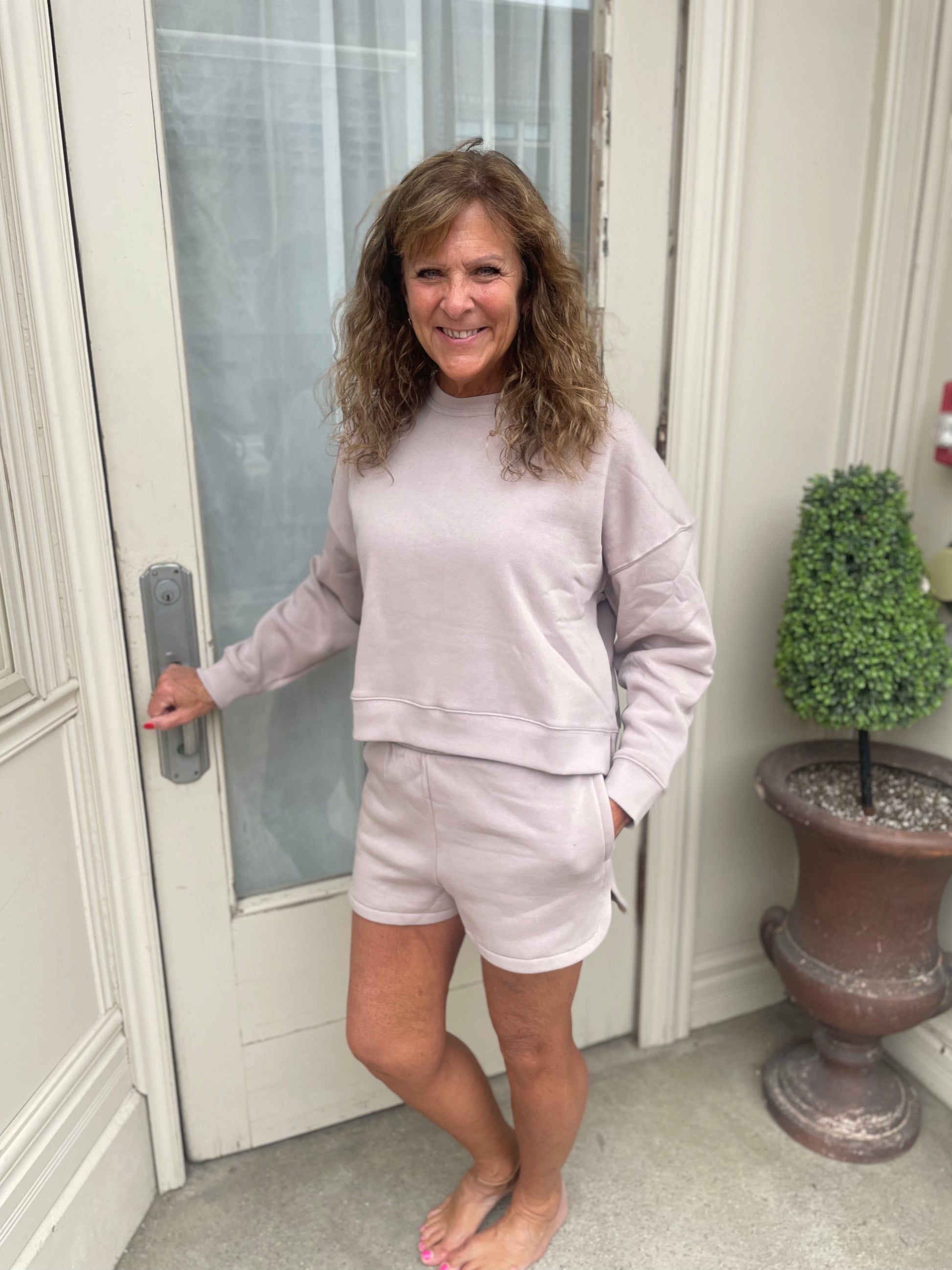 FLEECE LONG SLEEVE SWEATSHIRTS & SHORTS SET -ELASTIC WAISTBAND SHORTS WITH SIDE POCKETS